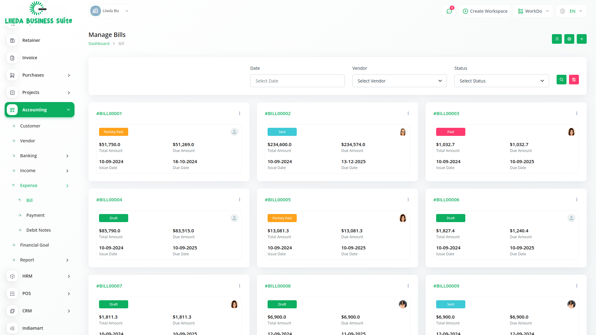With Liieda Business Suite, you can conveniently manage all your business functions from a single location.