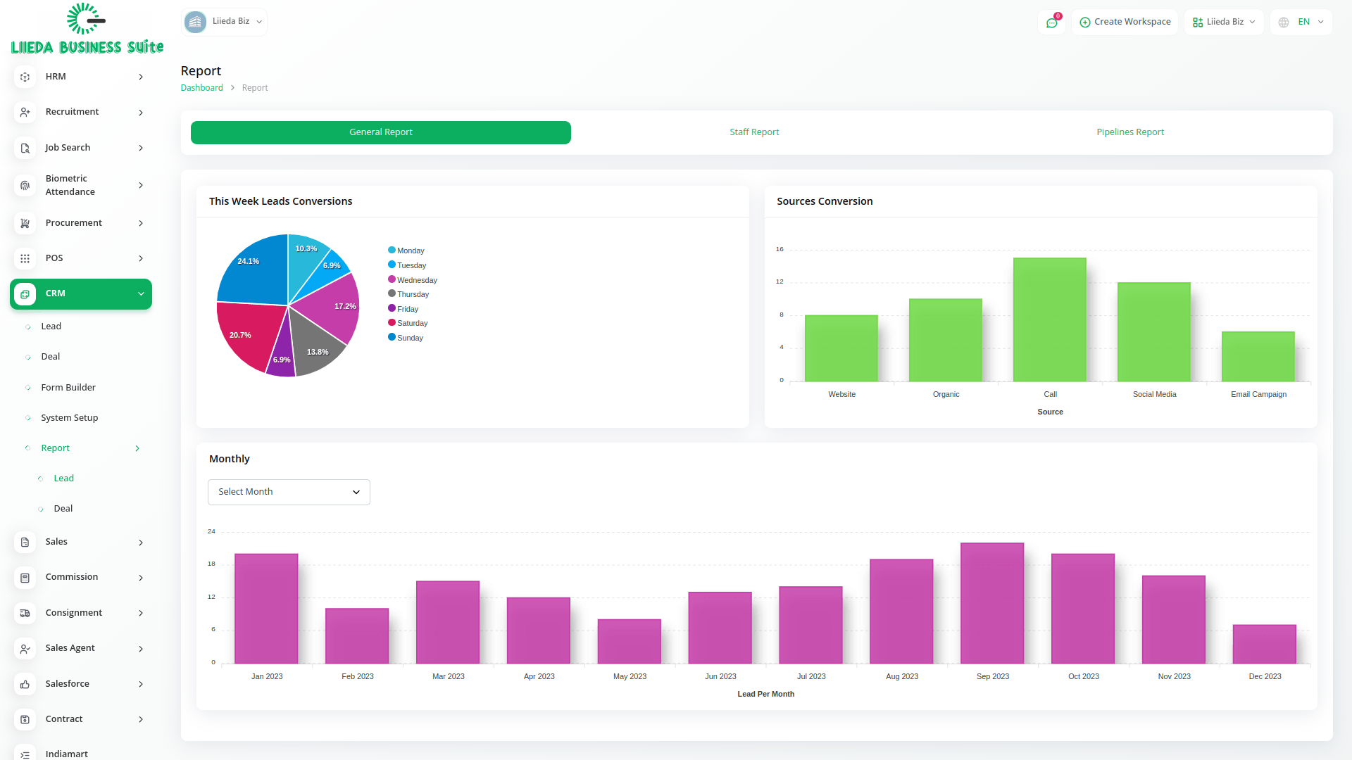 With Liieda Business Suite, you can conveniently manage all your business functions from a single location.