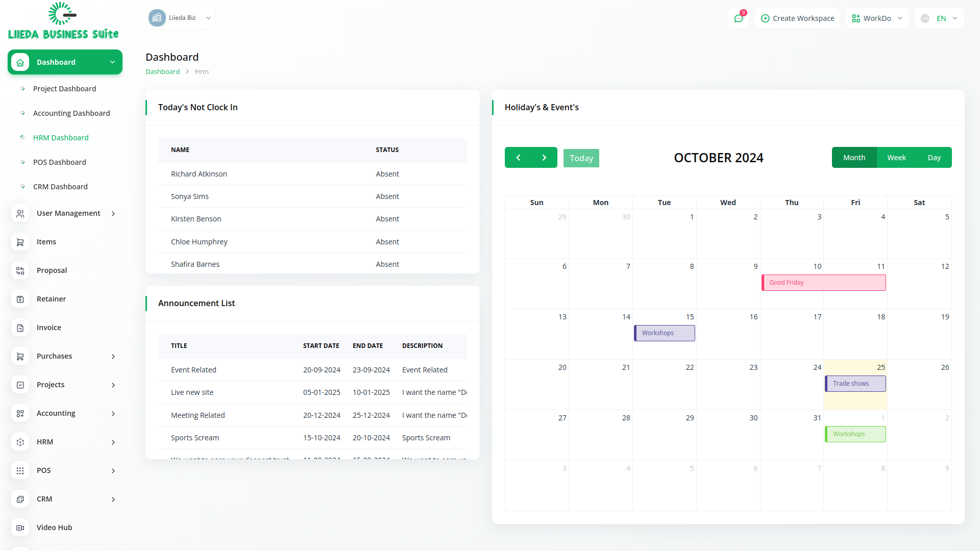 With Liieda Business Suite, you can conveniently manage all your business functions from a single location.