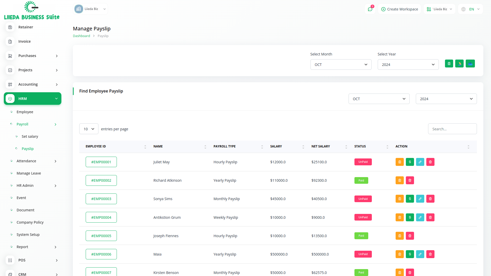 You can generate monthly payslips and make bulk payments through easy clicks. You could also change the status of the payslip with an easy CTA. An employee could view the breakdown of their salary components.