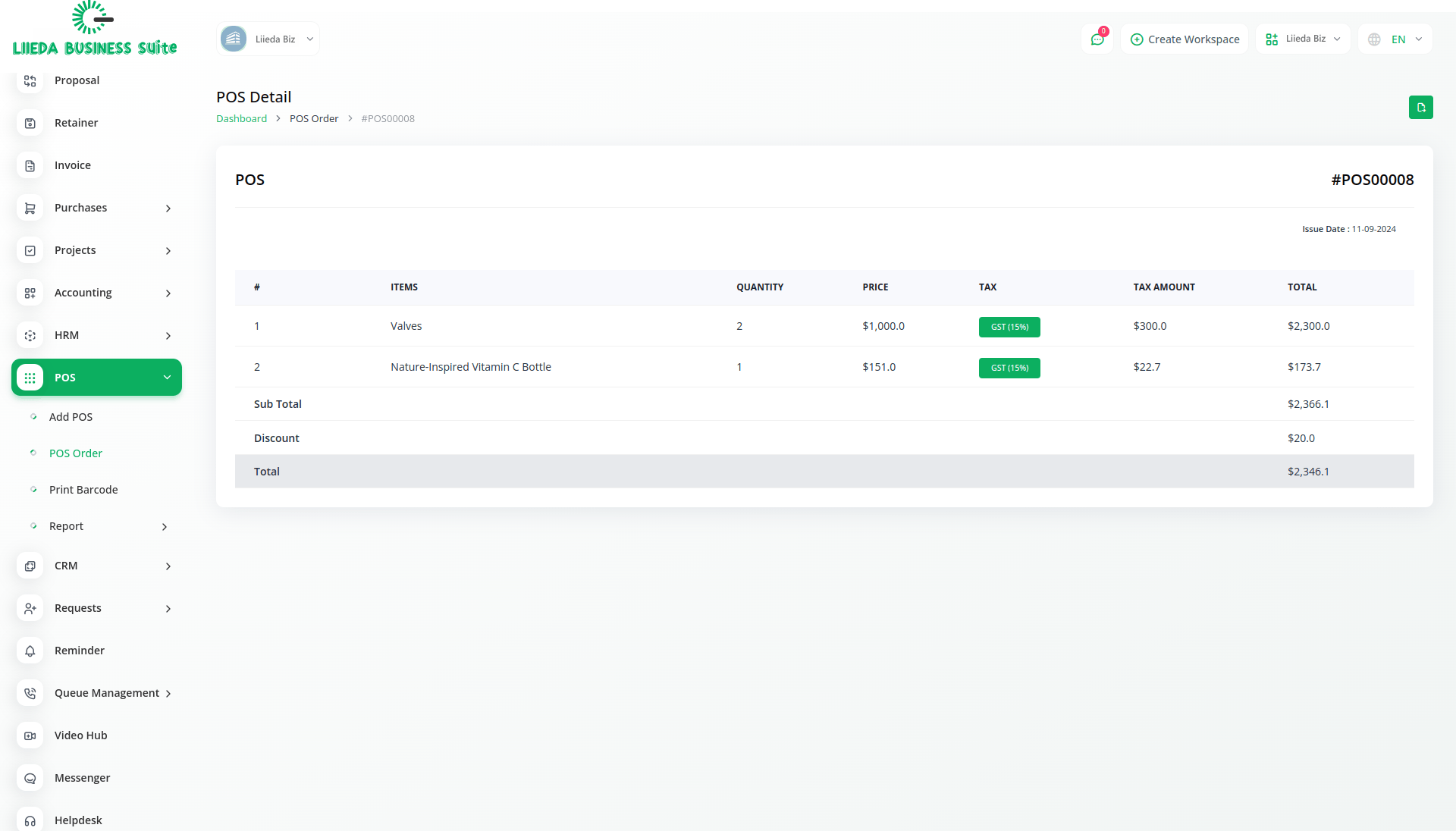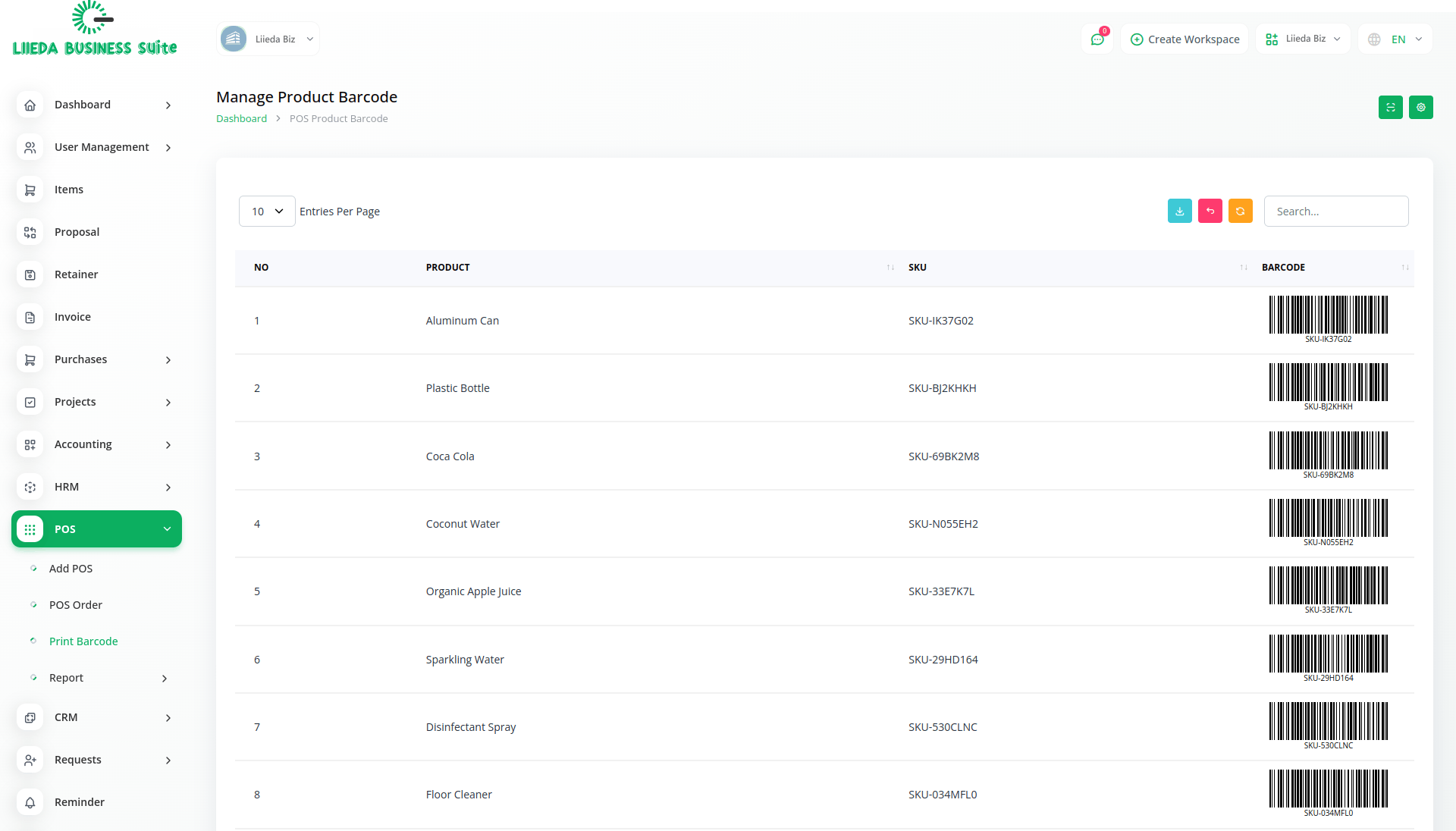 Simplify sales management with Liieda Business Suite POS. Track revenue, manage products, process orders, and utilize barcode functionality for seamless transactions.